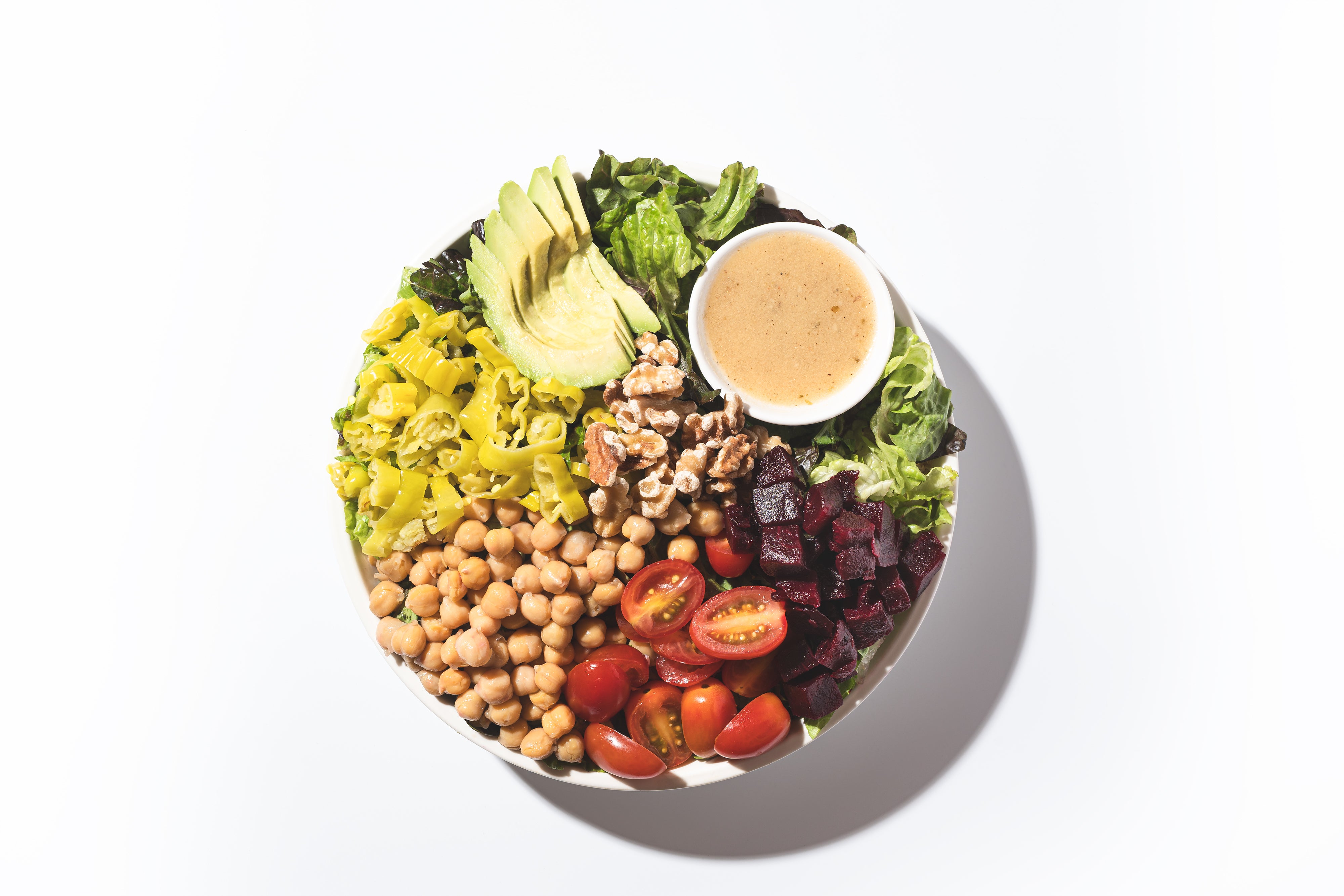 Red Leaf Lettuce, Beets, Chickpeas, Avocado, Grape Tomatoes, Pepperoncini, Champagne Vinaigrette